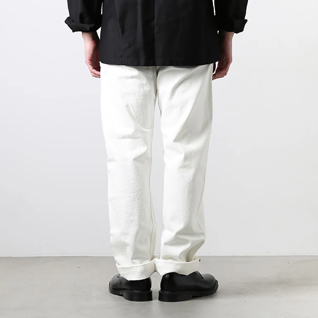 As the name suggests, it is an original fit produced with an elegant Ivy in mind. The white denim is almost the same ounce as Oathrow's standard denim, which is why it matches the Ivy style so well.